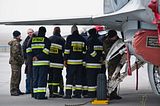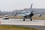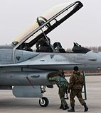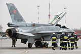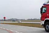 Na łódzkim lotnisku wylądował dziś samolot myśliwski F–16. Celem przylotu było sprawdzenie parametrów technicznych, operacyjnych łódzkiego lotniska oraz szkolenia Strażaków Lotniskowej Straży Pożarnej na wypadek, gdyby lądowanie tych samolotów na lotnisku w Łasku było utrudnione lub niemożliwe.